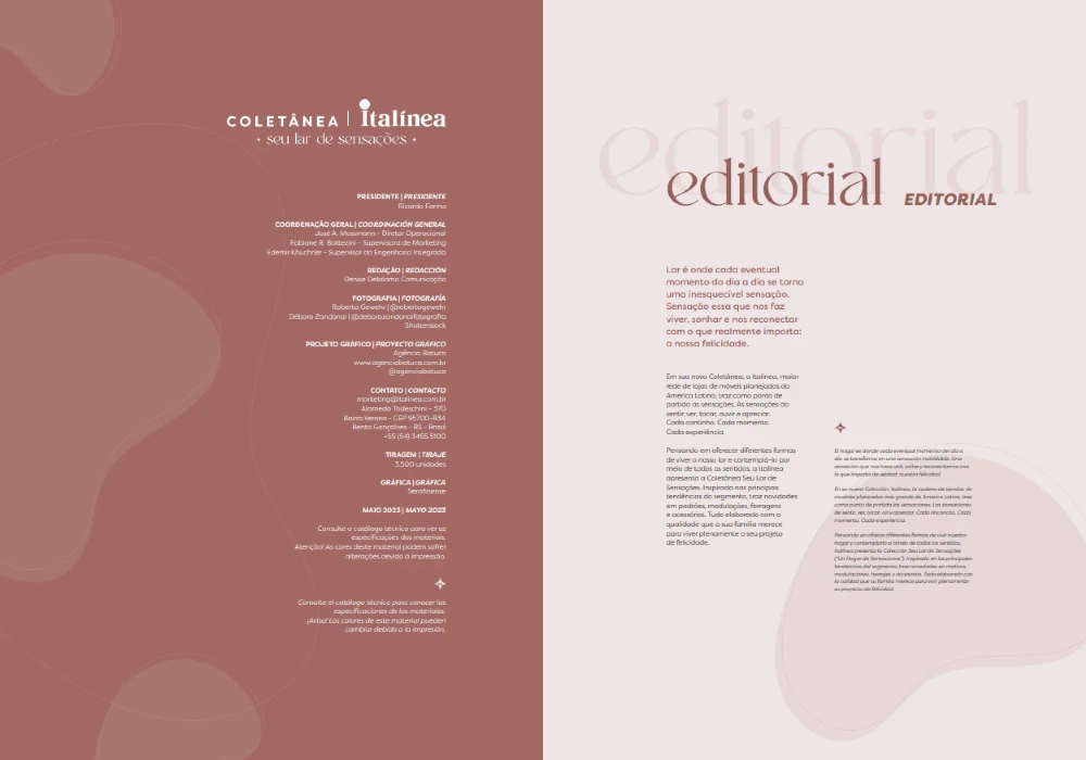 Em sua nova Coletânea, a Italínea, maior rede de lojas de móveis planejados da América Latina, traz como ponto de partida as sensações. As sensações do sentir, ver, tocar, ouvir e apreciar. Cada cantinho. Cada momento. Cada experiência.
